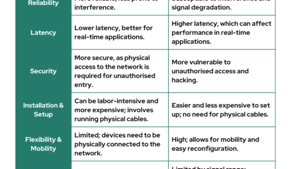 8. مزایا و معایب استفاده از شبکههای بیسیم در مقابل شبکههای کابلی مقدمه در انتخاب راهکارهای شبکه برای یک کسبوکار یا محیط خانگی، یکی از اولین تصمیمات مهم انتخاب بین...