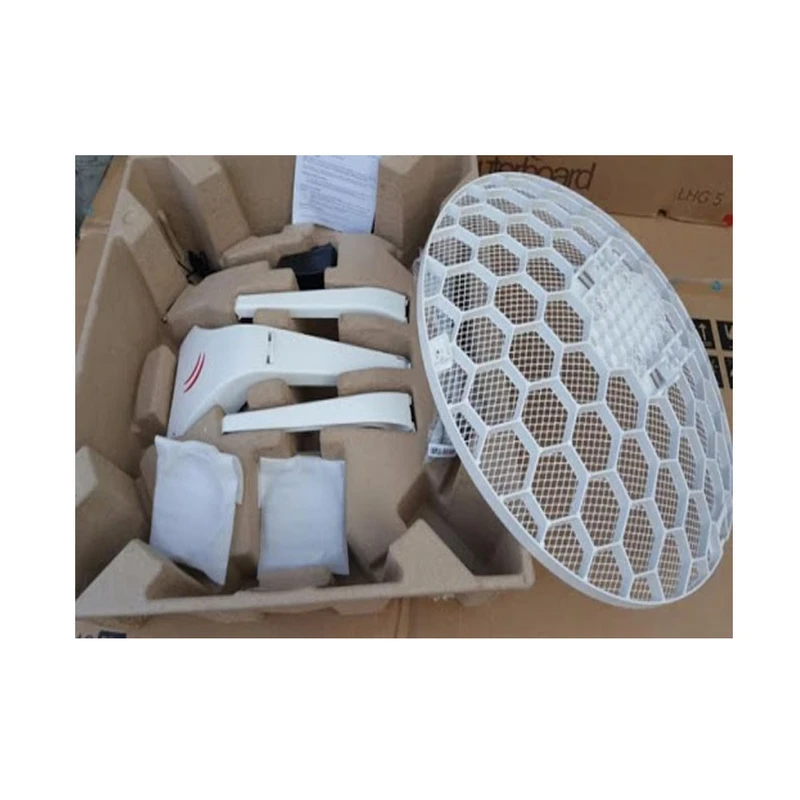 محصول Mikrotik RBLHG-5nD LHG 5 از تجهیزات میکروتیک یک دستگاه وایرلس با قابلیت Access Point برای مراکز اداری کوچک است که از نسل جدید پردازنده Atheros پردازنده: AR9344 با قدرت بیشتر و رم 64 مگابایت طراحی شده است. این آنتن اکسس پوینت با مدل آنتن خارجیOutdoor 24.5dbi که از استاندارد IEEE 802.11a و IEEE 802.11n پشتیبانی می کند را دارا می باشد. همچنین این دستگاه مناسب برای لینکهای PtP و استیشن می باشد. شایان به ذکر است که سرعت انتقال این دستگاه 5GHz-54MBit/s-20dBm و که می تواند به دیگر اکسس پوینت ها متصل گردد. حداکثر جریان بار برروی این پورت 500mA می باشد. رادیو وایرلس میکروتیک LHG 5 یک دستگاه وایرلس کوچک و سبک 5 گیگاهرتزی با استاندارد 802.11a/n و یک آنتن توری دو قطبی (dual polarization 24.5 dBi) یکپارچه با قیمت بسیار مناسبی می باشد. این رادیو برای اتصال های point to point یا برای استفاده به عنوان CPE در مسافت های طولانی ایده آل است و از پروتکل NV2 TDMA پشتیبانی می کند. طراحی توری این رادیو وایرلس محافظت در برابر باد را تضمین می کند. این دستگاه باتوجه به حجم مناسبش حمل آسانی دارد و شامل یک نقطه برای اتصال به زمین برای استفاده مناسب است. همچنین در بسته بندی این رادیو یک آداپتور کوچک برای تغییر جهت آنتن به پنج درجه نسبت به موقعیت اصلی آن قرار دارد.