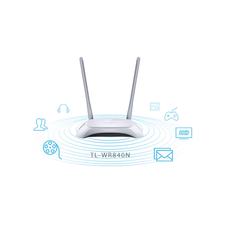 روتر بیسیم TL-WR840N دستگاهی مرکب از اتصال باسیم و بیسیم است که برای ادارات کوچک و مصارف خانگی طراحی شده است. TL-WR840N عملکرد بیسیم بسیار خوب و تحسینبرانگیزی دارد و برای استریم کردن ویدیو، تماسهای VoIP و بازیهای آنلاین بسیار مناسب است. همچنین دکمهی «نصب محافظتشدهی وایفای» WPS بر روی بدنهی روتر کدگذاری WPA2 روتر را تضمین میکند و آن را از استفادههای دیگران حفاظت میکند. این روتر که با استانداردهای IEEE 802.11b/g/n سازگاری دارد به کاربران سرعتی برابر با 300Mbps ارائه میدهد که برای اهداف مصارف خانگی بسیار مناسب است. فناوری CCA (فناوری کانال آزاد) بهصورت خودکار از تداخل سیگنال با دستگاههای دیگر جلوگیری میکند و از این طریق عملکرد بیسیم را بهبود میبخشد. همچنین ادمین شبکه میتواند با استفاده از قابلیت QoS میزان پهنای باند به هر کامپیوتر را تعیین کند. نصب این روتر بسیار آسان بوده و با استفاده از Wizard های در نظر گرفته شده در مدتی کوتاه نصبشده و کاربر میتواند از آن استفاده کند.